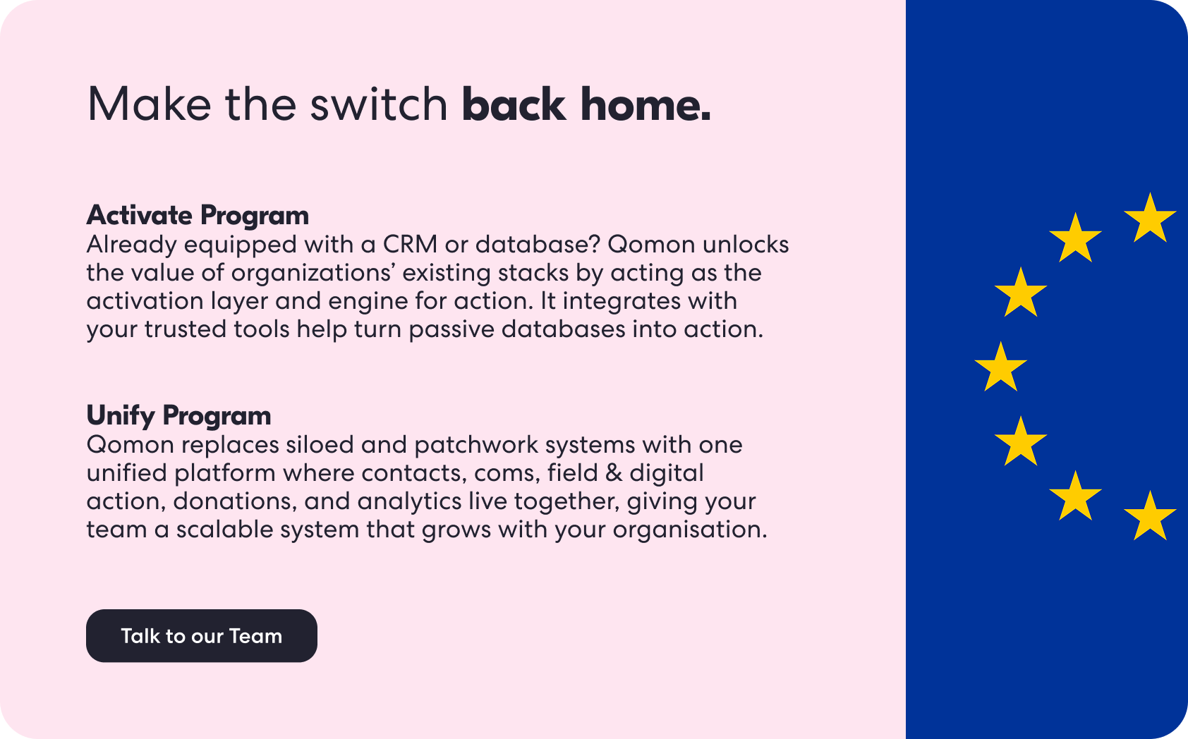 They could use the most advanced digital organising tools on the market, but host their data outside Europe. Or, they could keep their data within European infrastructure and legal frameworks, while settling for platforms that weren’t designed for modern organising, multichannel engagement, or the pace of today’s developments and AI.